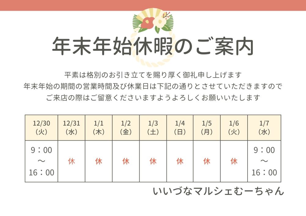 誠に勝手ながら、年末年始の期間につきましては一部店舗にて休業日を設けさせていただきます。