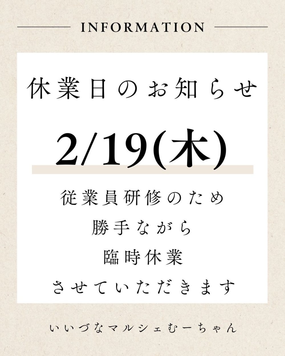 従業員研修のため、勝手ながら